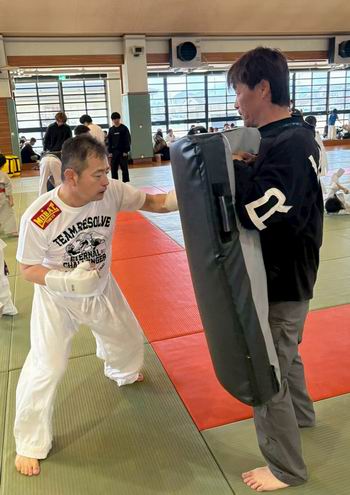 選手の皆さん、全員が本当によく頑張りました。この大会で得たものを生かし、次の目標に向けて、一歩一歩前に進んでいきましょう。補佐していただいた先生方、黒帯の皆様、保護者の皆様、ありがとうございます。最後になりましたが、この大会を主催された護心流の長迫先生、金谷先生はじめ関係者の皆様に、この場を借りて厚く御礼申し上げます。 News.10 今年も道場にサンタがやってきた!! 令和7年12月15日(月)は道場にとって、一足早いクリスマスになった。サンタに扮した吉田先生と森川先生が登場するや、子供たちが歓声を上げた。特に幼稚園・保育園の子供たちは、『サンタさんだ〜』と大喜びだった。