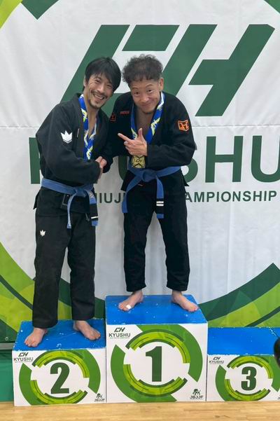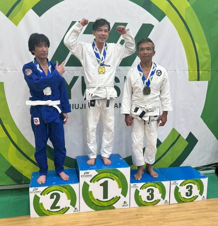 大智君、大変お疲れ様でした。敗れはしましたが、気持ちのこもった素晴らしい試合を見せていただきました。今は体を休めることだけ考えて下さい。セコンドを務めた宮崎先生、昌也君はじめ応援にかけつけていただいた皆様、大変ありがとうございます。最後になりましたが、この大会を主催された修斗関係者の皆様に、この場を借りて厚く御礼申し上げます。 News.5 九州柔術選手権 上田 健二 藤崎 陽平が優勝/佐藤 武典が準優勝!! 令和7年11月16日(日)福岡市総合体育館 武道場にて、第17回九州柔術選手権が開催された。この大会に山口有永道場(有永道場 Team Resolve)から、以下の5名の選手が出場し活躍した。京井 陽翔(ジュブナイル白帯 ライトフェザー級)、杉浦 克樹(アダルト白帯 フェザー級)、藤崎 陽平(マスター2紫帯 ライト級・無差別)、佐藤 武典(マスター4白帯 ライトフェザー級)、上田 健二(マスター4青帯 ライトフェザー級)
