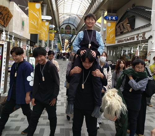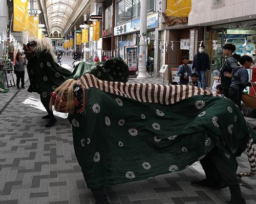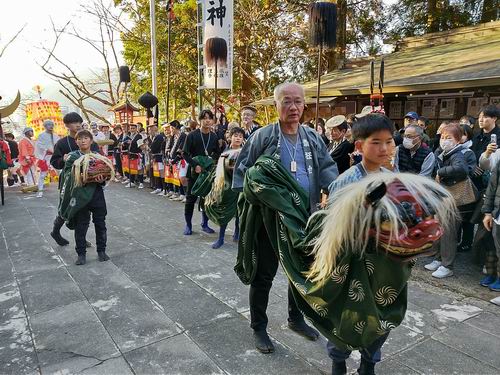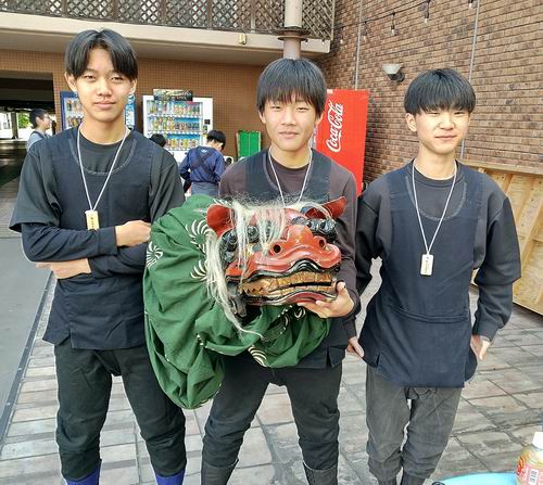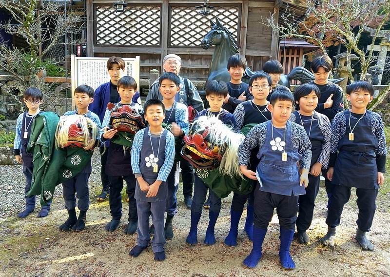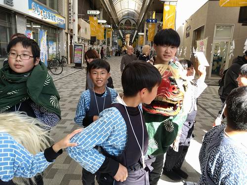 陽菜ちゃん、よく頑張りました。これからも楽しむ気持ちを大切にして、一歩一歩成長していきましょう。高学年になったので、何をするべきか自分自身で考えることも大事です。日坂さん、遠方までの引率ありがとうございます。 最後になりましたが、新極真会広島支部の大濱師範はじめ関係者の皆様に、この場を借りて厚く御礼申し上げます。 押忍 News.2 山口天神祭 山口有永道場から6名が参加し獅子舞を演じる!! 令和7年11月23日(日)山口三大祭のひとつ、山口天神祭に山口有永道場から6名が参加し、商店街などを練り歩きながら、地元の子供たちと獅子舞を演じた。