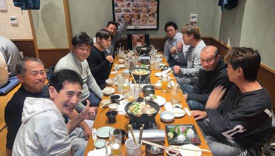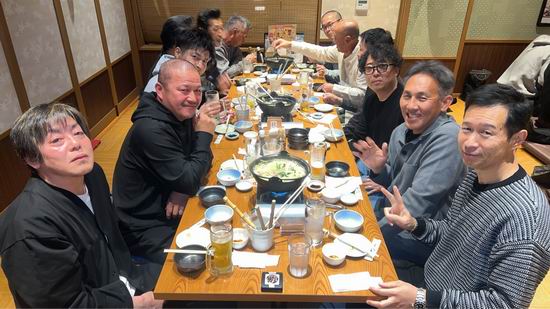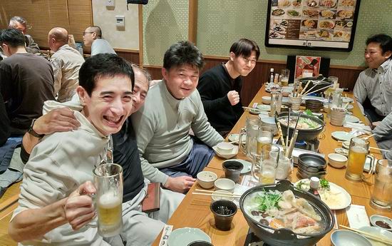 上田先生、藤崎さん、優勝おめでとうございます。佐藤さん、準優勝おめでとうございます。京井君、杉浦君、お疲れ様でした。宮崎先生はじめ応援に駆けつけた皆様、大変ありがとうございます。最後になりますが、この大会を主催された柔術関係者の皆様に、この場を借りて心から御礼申し上げます。 News.6 交流試合打上&反田君 冬羽君 祝勝会 開催!! 令和7年11月15日(土)湯田温泉某所にて、2025秋季(第38回)山口県下各道場交流試合の打上&反田君10人組手完遂祝い&冬羽君 新極真中国大会一般上級3位入賞祝いを開催した。名目はどうあれ、大いに食べて飲んで、語りつくして、さらに親睦を深めた。