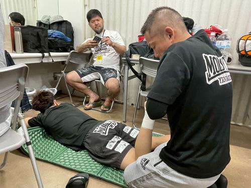 堀澤選手 1ラウンド・2ラウンドともに、堀澤選手は右下段廻し蹴りで相手選手を崩し、タックルを仕掛ける。テイクダウンに成功すると、粘る相手にポジションを譲らず、肩固め、バックチョーク、腕十字を仕掛け続ける。組技での積極性が光り、会心の判定勝ちとなった。 ベテラン堀澤選手は道場のムードメーカーでもある。この経験を後輩たちに伝えるのも、大切な役割だろう。若手には、挑戦し続ける堀澤選手の姿勢を手本にしてもらいたい。