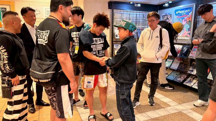 福間選手の初戦:サウスポーから伸びのあるジャブを上手く使い、左ストレート、左右のフック、左ミドルキックにつなげる。寝技でもペースを渡さない。2Rに入りキレのあるパンチでダウンを奪ったところで、レフリーが試合を止めた。見事なTKO勝利だった。 福間選手2戦目:1R、打撃戦ではペースを掴むが、寝技では一進一退の攻防になる。2Rに入ると一瞬の隙を見逃さず、フロントチョークをガッチリ決めて一本勝ちを奪った。まさに会心の連勝だった。